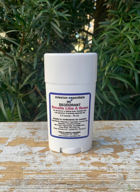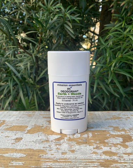 Ingredients: magnesium hydroxide, coconut oil, beeswax (vegan alt), arrowroot powder, mid-chain triglycerides, shea butter, candelilla wax, rice bran oil, vit e and EO blend (see choices above)